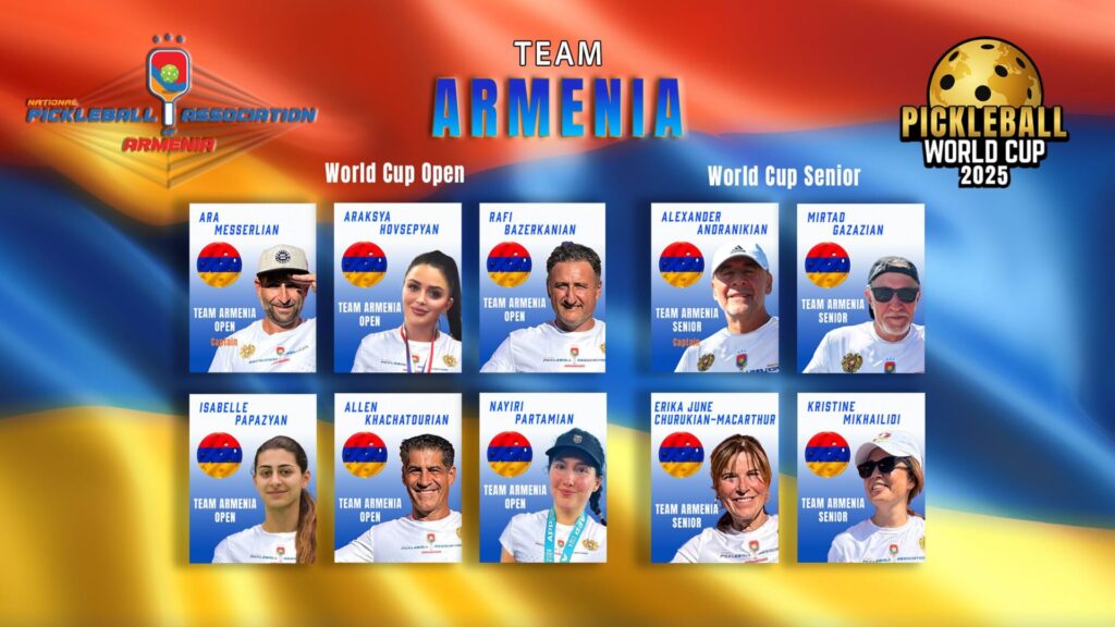 Pickleball World Cup 2025 ARMENIA HEADS TO THE PICKLEBALL WORLD CUP 2025 The National Pickleball Association of Armenia is proud to announce that, for the first time, Armenia will be represented at the Pickleball World Cup 2025 in Florida, USA. Founded only two years ago, our nonprofit association has worked tirelessly to introduce pickleball to Armenia, build a foundation for the sport, and prepare athletes to compete internationally. Today, those efforts have resulted in a national team ready to stand alongside the best in the world. This is a historic step for Armenian pickleball and a milestone for our association. We look forward to showcasing Armenia’s talent, determination, and spirit on the global stage. Screenshot